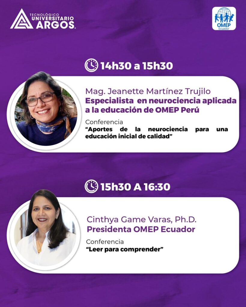 La atención a la primera infancia es clave para el desarrollo del Ecuador. Por ello, el Tecnológico Universitario Argos, en alianza con la Organización Mundial para la Educación Preescolar OMEP, invitó a docentes de todos los niveles educativos a participar en la jornada virtual de capacitación “Atención Integral a la Primera Infancia desde una Perspectiva Científica y Emocional”, que se desarrolló los días 11 y 12 de junio de 2025.
